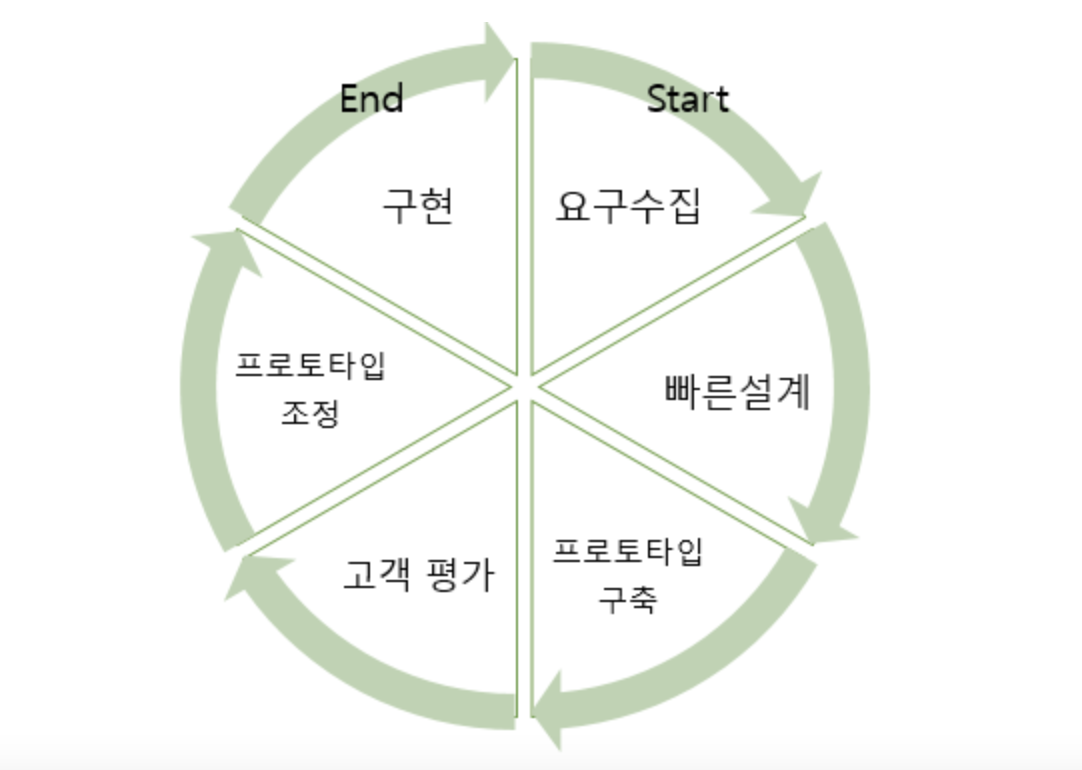 타당성 검토 - 계획 - 요구 분석 - 설계 - 구현 (코딩) - 시험 (검사) - 유지보수
