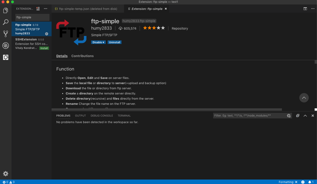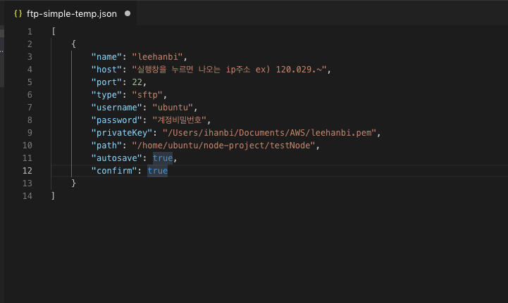 설치 후 F1키를 눌러 ftp-simple-temp.json 파일을 찾아 열어줍니다.