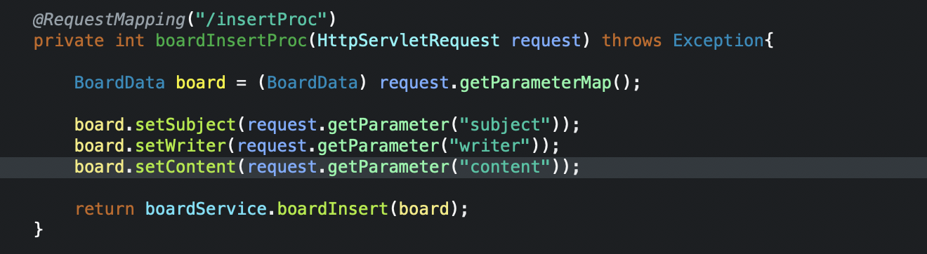 private String boardInsertProc(HttpServletRequest request) throws Exception{