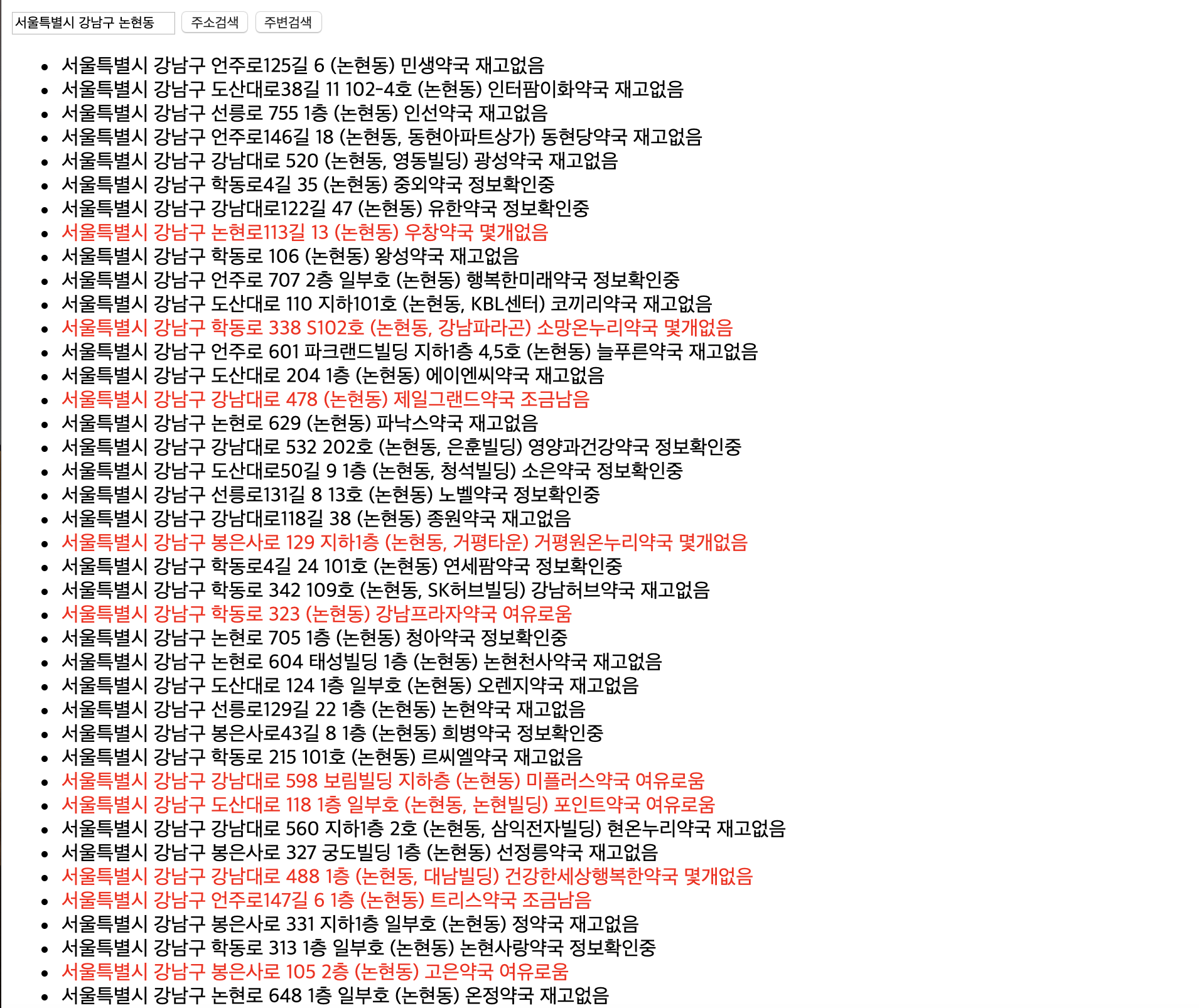 ・주소를 기준으로 해당 구 또는 동내에 존재하는 판매처 및 재고 상태 등의 판매 정보 제공.