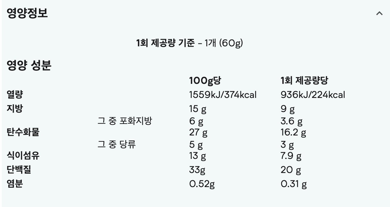 공식 사이트에 써져있는 1회 제공량당 영양정보입니다 !