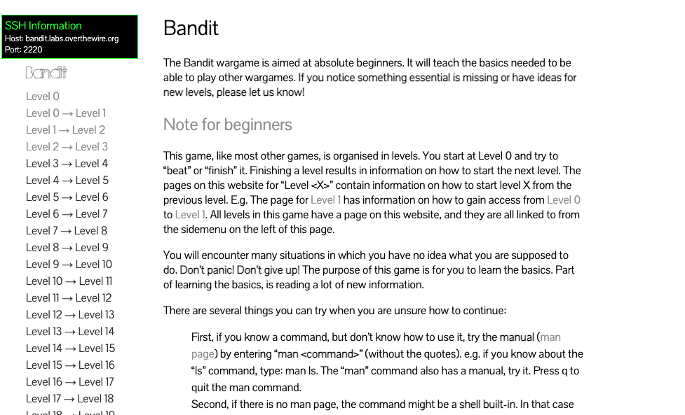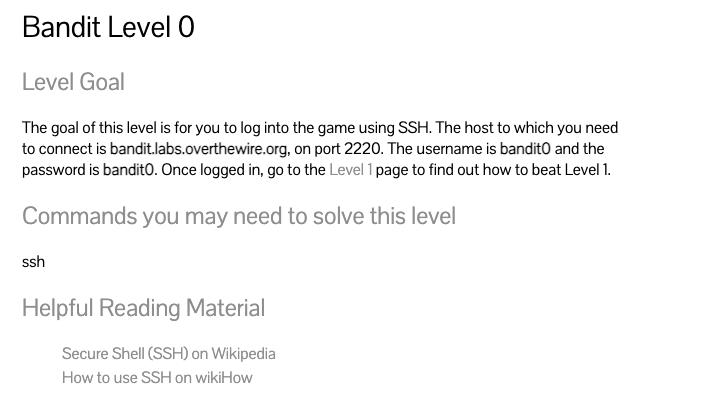$ ssh bandit0@bandit.labs.overthewire.org -p 2220