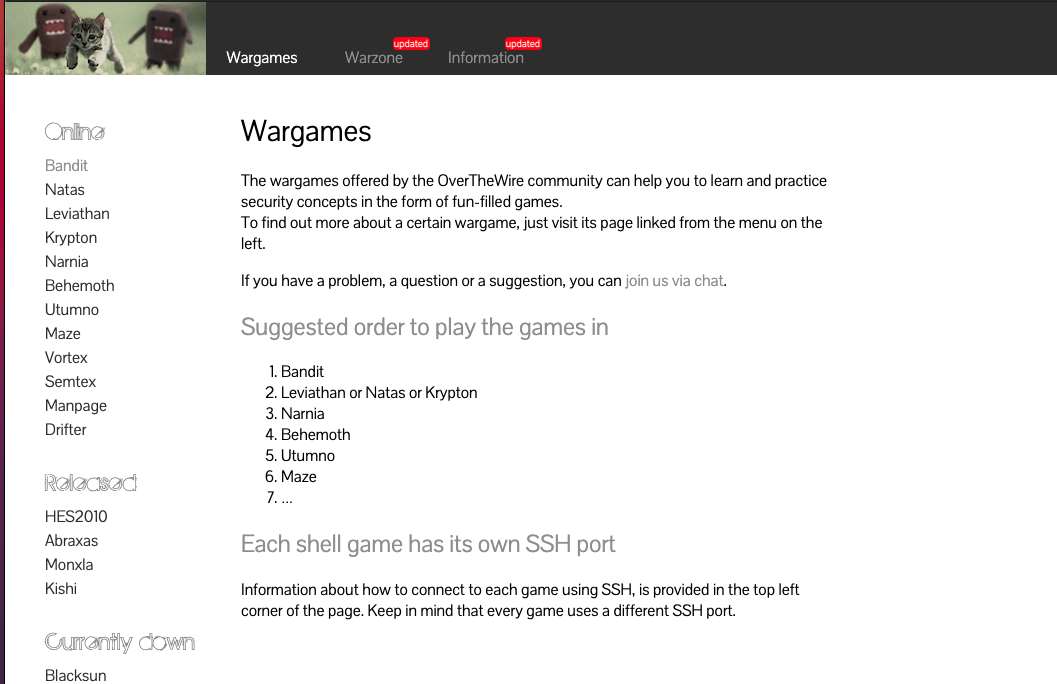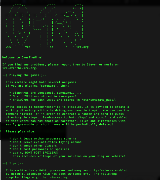 We're hackers, and we are good-looking. We are the 1%. Wargames The wargames offered by the OverTheWire community can help you to learn and practice security concepts in the form of fun-filled games. To find out more about a certain wargame, just visit its